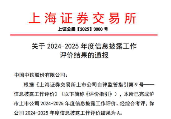 十七载A级殊荣沉淀,十二载信披佳绩传承。这份成绩单的背后,是中国中铁将治理优势转化为发展动能的持续实践。作为基建领域领军央企,公司在重大工程建设、绿色转型、科技创新等领域持续突破的同时,始终以投资者利益为导向,筑牢市场信任基石。