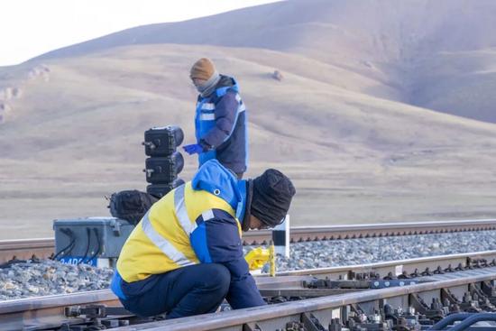 今年10月,日阿尺曲站4号道岔转辙机故障,必须立即更换。工长刘岁意和工友们抬着150多公斤的设备,在海拔4500多米的高原一点点往前挪,这样的场景早已成为他们的工作常态。