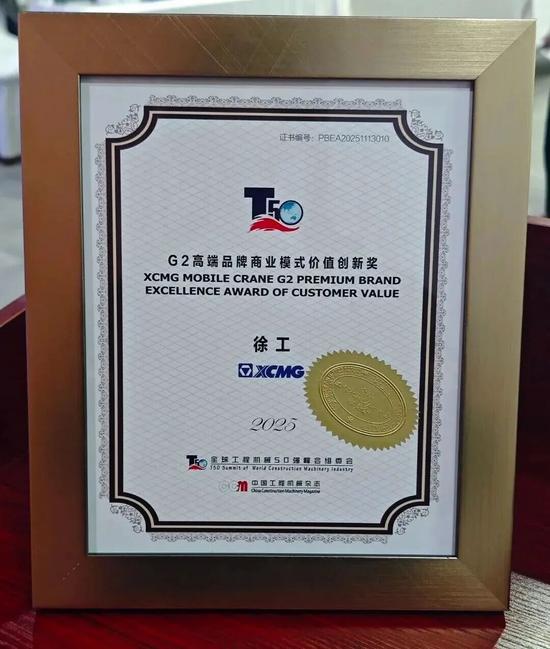 11月20日,由工业和信息化部人才交流中心主办、双品工程品牌建设委员会协办的“2025年度品牌引领行动暨优秀品牌建设经典案例分享活动”在北京举行,会议期间,揭晓多项年度品牌大奖,徐工G2摘得“特别荣誉・大国卓品”殊荣,见证了中国制造的向上突破。