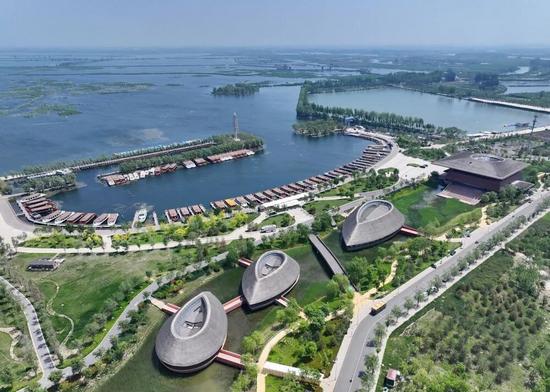 这是河北雄安新区白洋淀旅游码头景色(2024年5月8日摄,无人机照片)。新华社记者 牟宇 摄