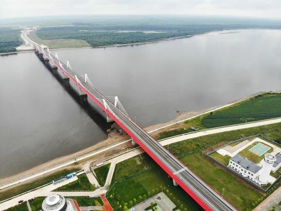 在大桥施工建设过程中,为防止对黑龙江水质造成污染,大桥上积水通过管道排到地面的净水池,净化达标后再排放。严格治理、联合监测、共同保护,近年来两国构建一系列跨境河流联合保护机制,有效改善河流生态环境,为国际河流治理树立典范。