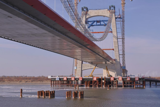 11月20日,哈尔滨都市圈环线西南环段节点性工程松花江特大桥完成主桥体系转换关键工序,标志着我国在寒区大跨度自锚式悬索桥建设领域取得又一突破性进展。