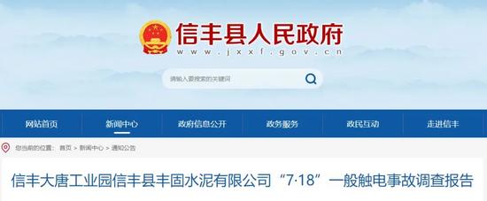 日前,江西省赣州市信丰县人民政府发布《信丰大唐工业园信丰县丰固水泥有限公司“7·18”一般触电事故调查报告》显示,2025年7月18日2时42分左右,信丰大唐工业园信丰县丰固水泥有限公司破碎车间发生一起触电事故,造成1人死亡依据《企业职工伤亡事故经济损失统计标准》(GB6721-1986)有关规定,核定事故造成直接经济损失127.5万元。经调查认定,信丰大唐工业园信丰县丰固水泥有限公司“7·18”一般触电事故是一起因作业人员违章操作造成的生产安全责任事故。
