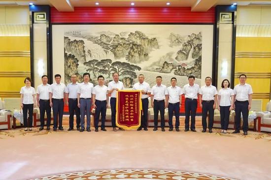 天津市领导代表天津市防汛抗旱指挥部向中冶天工颁发“抗洪抢险显央企担当,攻坚克难护海河安澜”锦旗