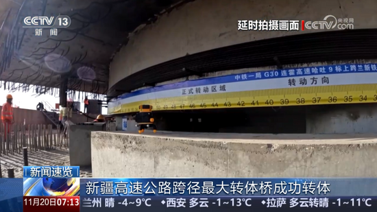 朝闻天下:新疆高速公路跨径最大转体桥成功转体