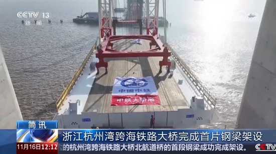 新闻30分:浙江杭州湾跨海铁路大桥完成首片钢梁架设