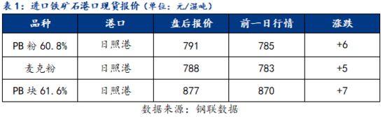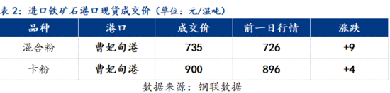 有市场参与者称:目前遵化地区仍受管控,选厂暂时未有复产计划,现货资源持续紧张,成交冷清,卖方报价多参考周边主导钢企,目前报价以稳为主。