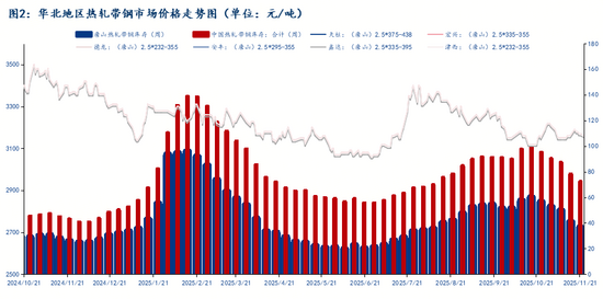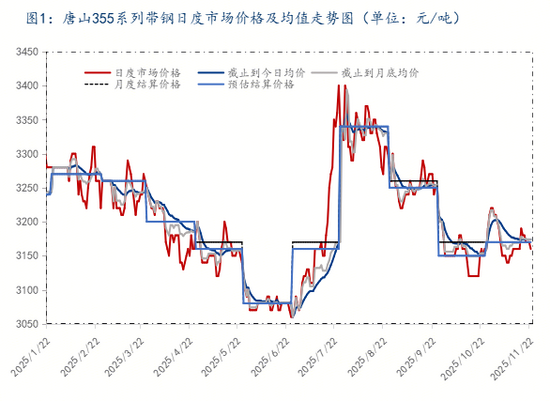 回顾11月市场,月度结算周期自上月26日至今,华北带钢价格涨后回落再震荡运行,均价较10月结算周期均值基本一致。目前2025年11月下旬,带钢供应端略有收窄,库存消化但依旧处于相对高位。利润继续压缩,市场信心不足。