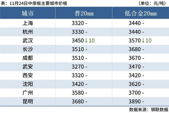 中厚板:1124日,全国24个主要城市20mm普板均价3424元/吨,较上一交易日维持不变。受限于近期需求,全国绝大多数城市中板现货价格以稳为主,贸易商对后市相对谨慎,不敢涨价。全天成交一般,收盘后反而询价客户变多。钢厂方面,本周开工率90%,周环比持平;钢厂周实际产量162.48万吨,周环比增加4.29万吨。预计25日价格以窄幅震荡为主。