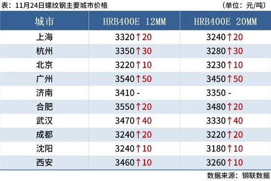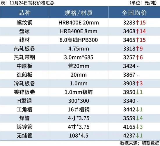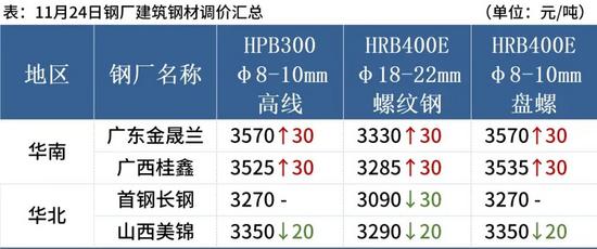 11月24日,国内钢材市场价格以小幅上涨为主,唐山迁安普方坯资源出厂上涨30报290元/吨。黑色系期货震荡走强,市场情绪出现回暖,现货成交有所放量