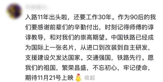 影片取材真实,情感真挚,故事充满了感人的力量,不少来自铁路系统的职工在观影后主动分享了自己的观影感受。