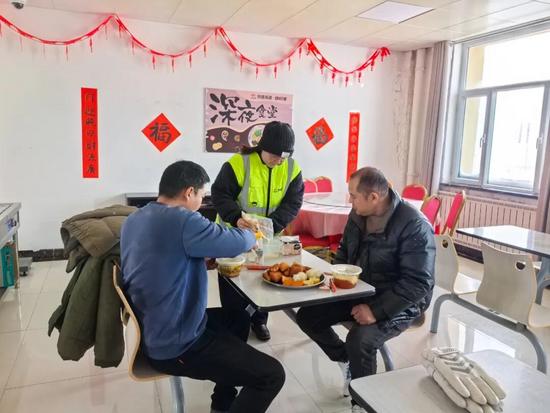 11月22日,公路运营公司京新项目经理部积极应对寒潮,为滞留司乘提供热食饮品等暖心服务。