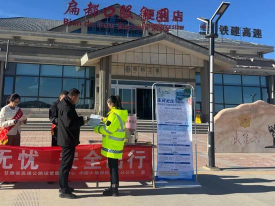 11月21日,公路运营公司张扁项目经理部在扁都口服务区开展“车货无忧”理赔责任险宣传活动,普及政策与保障范围。