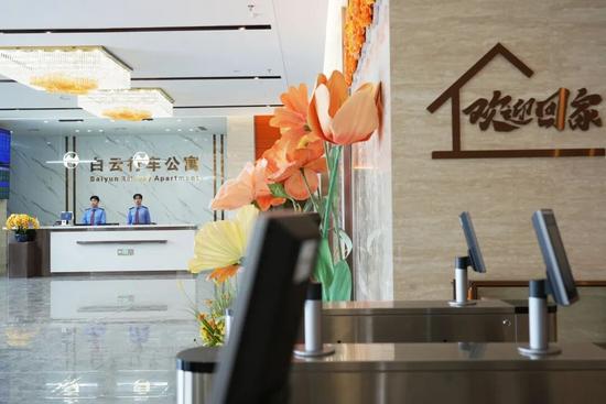 坐落于广州白云站西广场南侧白云行车公寓周边,处处可见精心设计的云山、珠水、榕树、红棉等岭南元素。自2023年12月启用至今年11月,这家公寓已累计服务司乘人员超过30万人次