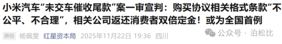 本案系全国首例小米汽车"未交付催收尾款"生效判决,已有消费者组建维权群计划集体诉讼。