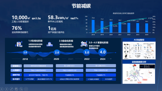 通过 AI 冷站智控、能耗监测等技术,实现公区能耗节省 27%,降低运营成本。