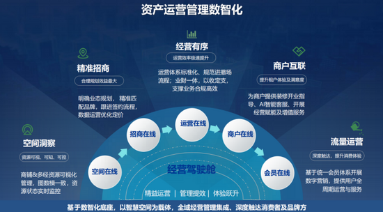 资产运营管理:实现空间、招商、商户、会员、运营“五在线”。在此基础上,基于数据实现精细化运营,实现对商户的赋能,以及针对会员的精准营销。