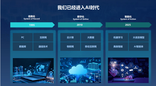 信息化时代(1995 年起):核心是“数据记录与管理数字化”,以 PC、互联网、数据库构建 “端 - 网 - 库” 闭环,支撑政务电子化、企业 ERP 等场景。