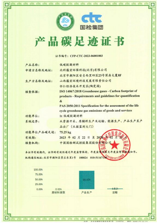 低碳胶凝材料碳足迹证书