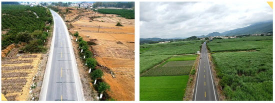 国道210线杨圩至才海K3294+660~K3314+000路段路面修复前(左)后(右)。