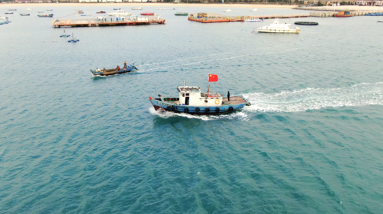 许师傅所在的村集体养殖场主要养殖海带等作物,11月份正是海带收获的关键季节。许师傅介绍,海带收获季,他的任务是开着拖船将十多艘载满海带的小船从养殖场拉到岸边,“总重量50吨左右,所以船必须有劲。
