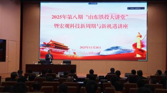 为赋能 “十五五” 时期高质量转型发展,11月28日下午,山东铁投集团举办2025年第八期“山东铁投大讲堂”暨宏观科技新周期与新机遇专题讲座,邀请广发证券全球首席经济学家、产业研究院院长沈明高博士作专题辅导。集团党委书记、董事长王卫中,党委副书记、总经理高立平等领导班子成员参加,党委委员、副总经理赵春雷主持并作总结发言。