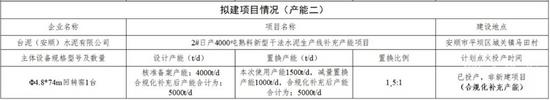 台泥(安顺)水泥有限公司#日产4000吨熟料新型干法水泥生产线补充产能项目本次使用产能1500t/d,减量置换产能1000t/d,合规化补充后产能合计为:5000t/d,置换比例为1.5:1。