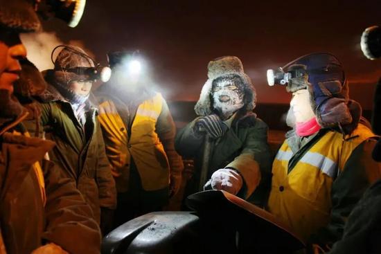 满洲里口岸,职工在寒夜里作业。苑春光 摄