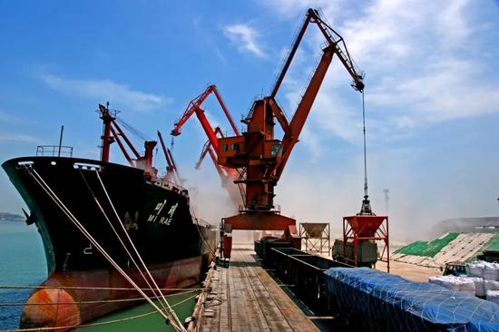 连云港港口,铁路运输与远洋海运“无缝对接”。赵亮 摄