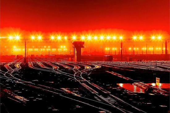 夜幕下,位于京沪、陇海两大铁路干线交会处的徐州北站灯光璀璨。丁辉 摄