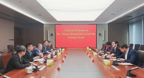 埃赫曼集团战略分析师Gabriel Schaub先生、项目管理专家Frank Li先生随同到访。南锰集团董事长詹海青、常务副总经理张贺、副总经理安慰,南锰投资财务总监梁捷瑜、财务部总经理刘运祺参加以上交流。