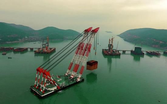 2004年,起吊重量为2500吨的“小天鹅”号起重船,首次在东海大桥施工中投入使用。