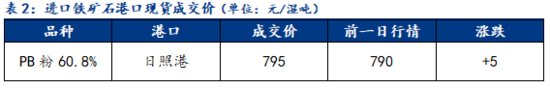需求端来看,钢厂利润欠佳,原料端预算较低,在精粉库存较小情况下,采购积极性一般,个别钢厂受内矿运输成本较高影响,依旧使用外矿代替,暂无采购内矿计划。