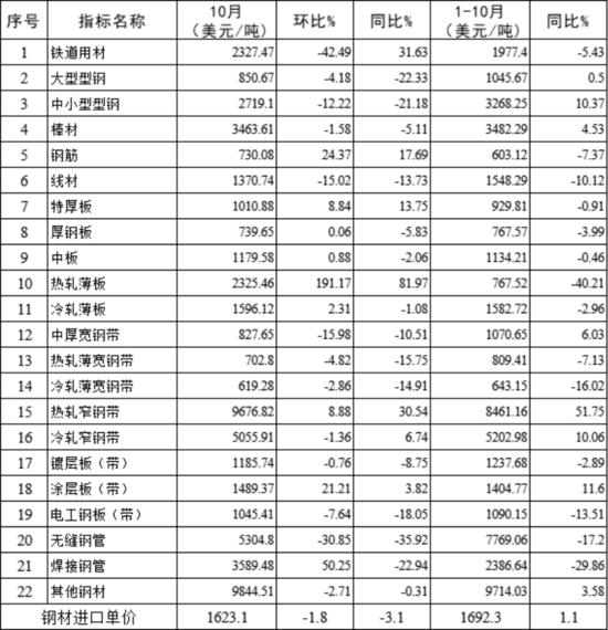 9 202510月2大类钢材进口均价情况