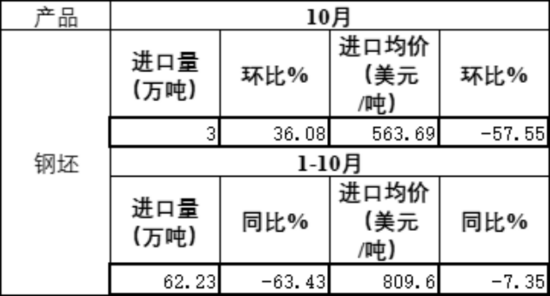 10 202510月钢坯进口数量、价格情况