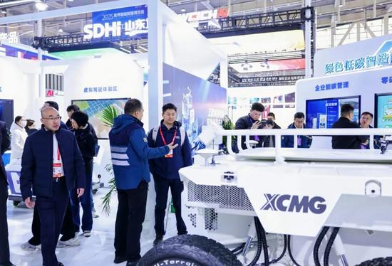 徐工重点展示了智能装备研制与集成、智慧物流、绿色低碳三大领域的综合实践: