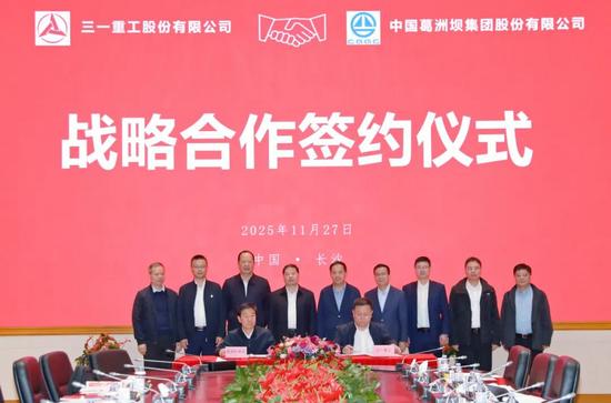 11月27日,三一重工与中国能建葛洲坝集团在长沙签署战略合作协议。双方将建立战略合作关系,在国内外工程市场开发、高端工程装备研发、智能建造技术攻关、设备采购与租赁等方面,充分发挥各自优势,共创合作共赢良好局面。
