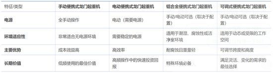 常见的 1 吨龙门起重机有以下四种手推式、铝制、电动和可调式。