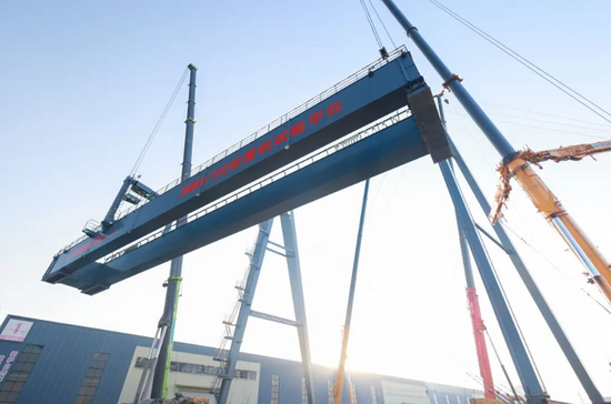 11月29日,河南矿山2000t门式起重机试验平台主梁在公司智能产业园顺利起吊。