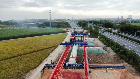 小箱梁架设完成现场。图源:广东省公路建设有限公司