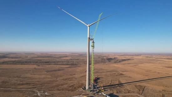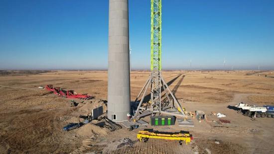 在吉林省白城市绿电产业示范园区20万千瓦风电项目中,中联重科的LW2800A-200NA风电塔机凭借其对场地面积要求小,转场效率高、抗风能力强等优势,出色完成了风机吊装工作,获得了项目方的高度评价。