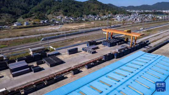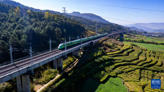 ▲ 12月2日,一列中老铁路“复兴号”列车即将抵达宁洱站(无人机照片)。