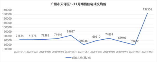克而瑞数据显示,在保利玥玺湾集中网签带动下,天河区11月成交均价达132552元/平方米,环比涨123%,也是自2021年以来首次突破10万元/平方米。