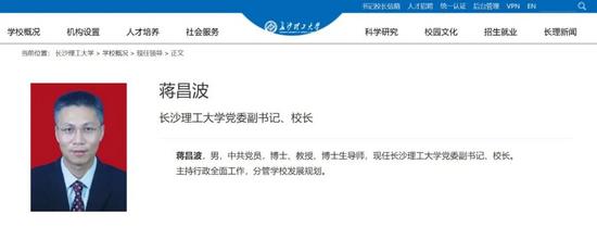 日前,长沙理工大学官网显示,蒋昌波已任长沙理工大学党委副书记、校长。