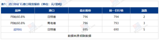 综合来看,多数矿选报价坚挺,钢厂维持刚需采购,预计短期内价格或将稳中偏强运行。