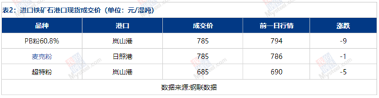 山东进口铁矿石现货市场价格偏弱运行 成交较少