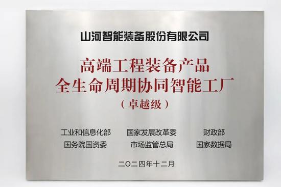 卓越级智能工厂是由工业和信息化部联合国家发展改革委、财政部等六部门共同培育认定的国内领先水平智能工厂,是智能制造梯度培育体系中的高级别荣誉,标志着企业在智能制造水平、人工智能应用、系统集成和价值创造等方面达到行业领先水平。此次获批,既是对山河智能数智化转型成果的权威认可,也彰显了企业在工程机械行业智能制造领域的标杆地位。