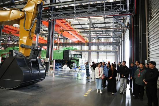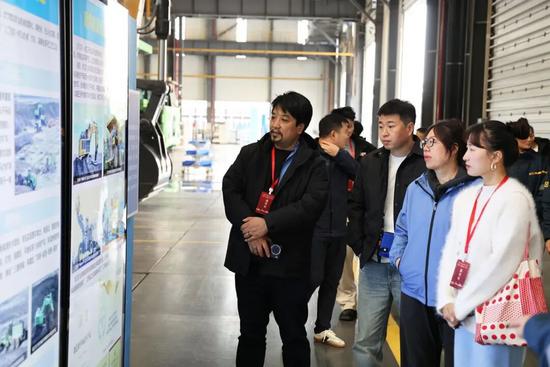 徐工矿机相关负责人向代表团系统阐释了公司如何以“数字领航”为舵,在核心技术创新、智能制造升级全球市场开拓的航道上破浪前行。
