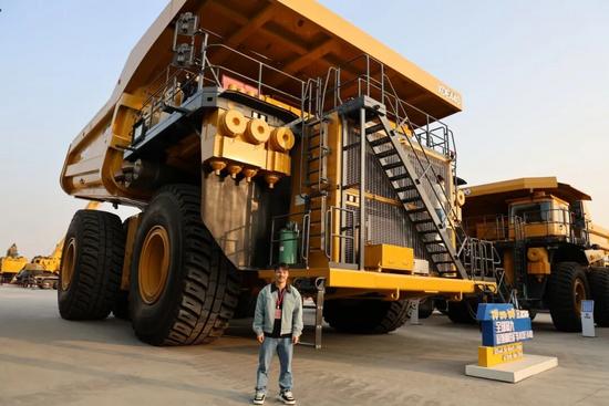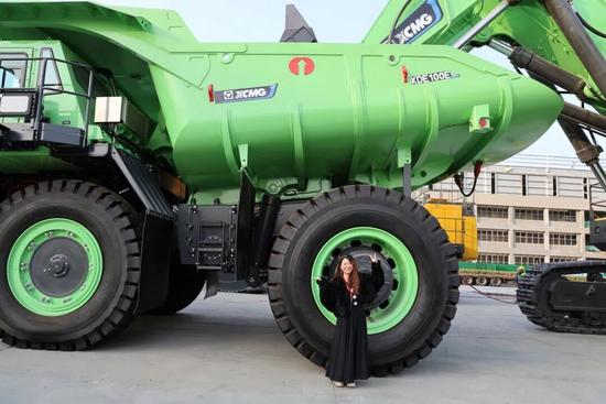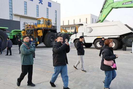 尤其引人注目的是,XE1350E电动液压挖掘机、XDE100E纯电矿卡等组成的“绿色矿山挖运军团”惊艳亮相,它们不仅是高效作业的利器,更是徐工践行“双碳”战略、推动行业绿色变革的实证,瞬间成为网络名人们争相拍摄记录的“明星”焦点。