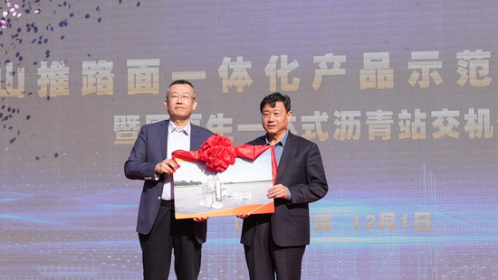 随后举行的山推路面一体化产品示范基地揭幕仪式将活动推向高潮。随着幕布徐徐揭开,“科技赋能 装备美好——山推路面一体化产品示范基地”正式宣告落成。
